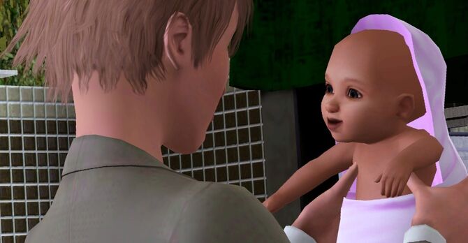Babies are the youngest life stage in The Sims three, and can be added to existing households through a pregnancy, adoption, a successful wish for a kid using the wishing well in Lucky Palms, by performing a cloning experiment using the scientific discipline research station in The Sims iii: University Life, by reincarnating a deceased Sim every bit a infant using the Door of Life And Expiry from The Sims iii Shop, or by going to the hospital in Oasis Landing and applied science a baby in The Sims iii: Into the Future.